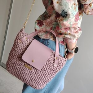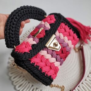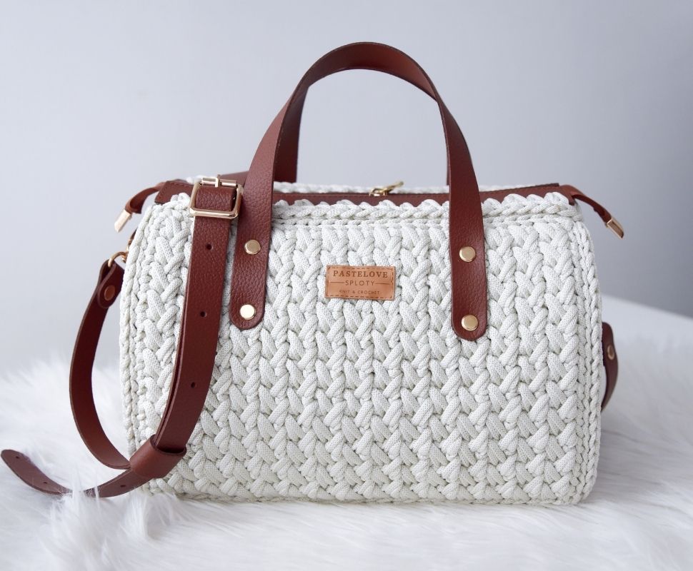 Torebka w kształcie worka to najprostsza do wykonania torebka na szydełku. Składa się z owalnego dna, a także ścianek ściągniętych do środka sznurkiem lub ściągaczem. Wersja tej torebki z samej przędzy to niskobudżetowa opcja – koszt nie przekroczy 50 zł. Dodatkowo jest bardzo łatwa do wykonania i całkiem pojemna.