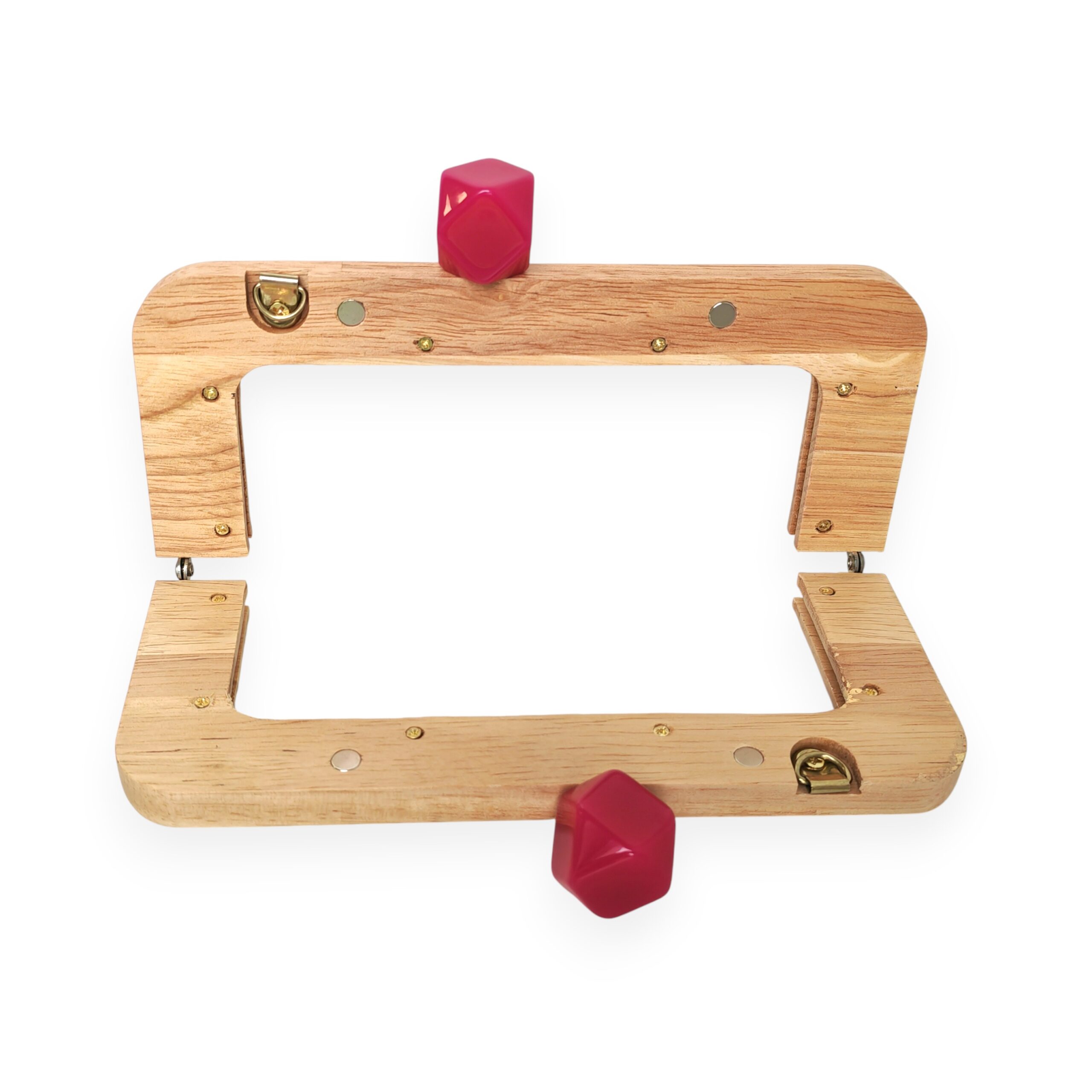 Posiadają one magnetyczne zapięcia, które są doskonałym rozwiązaniem ułatwiającym użytkowanie torebki. Dzięki zastosowaniu magnesów, otwieranie i zamykanie torebki staje się szybkie i wygodne. W biglach z każdej strony ramki znajdują się złote metalowe oczka służące do zamocowania w nich łańcuszka.