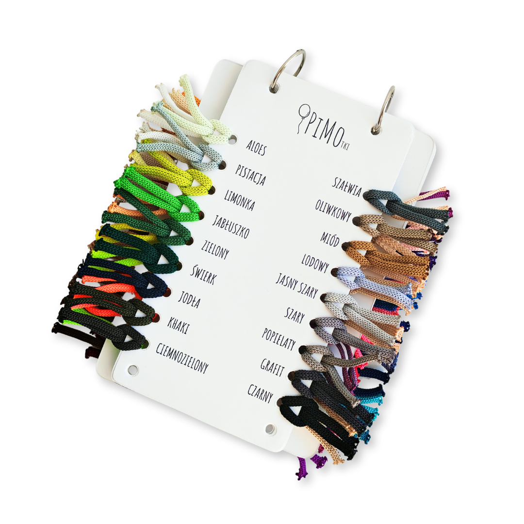 • Estetyczne przedstawienie kolorów sznurków PIMOtki.