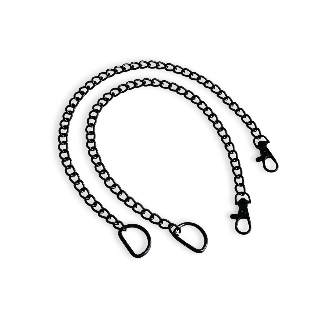 Zestaw dwóch metalowych łańcuszków przeznaczonych do samodzielnego wykonania rączki/paska do torebki. Każdy łańcuszek zakończony jest z jednej strony solidnym karabińczykiem, z drugiej metalowym półkółkiem, do którego można przyszydełkować rączkę wykonaną np. ze sznurka poliestrowego. Gotową rączkę/pasek mocuje się do torebki za pomocą karabińczyków – bez potrzeby stosowania dodatkowych narzędzi.