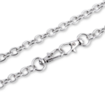 Łańcuszek składa się z mocnych, owalnych oczek. Na obu końcach posiada zamocowane karabińczyki.