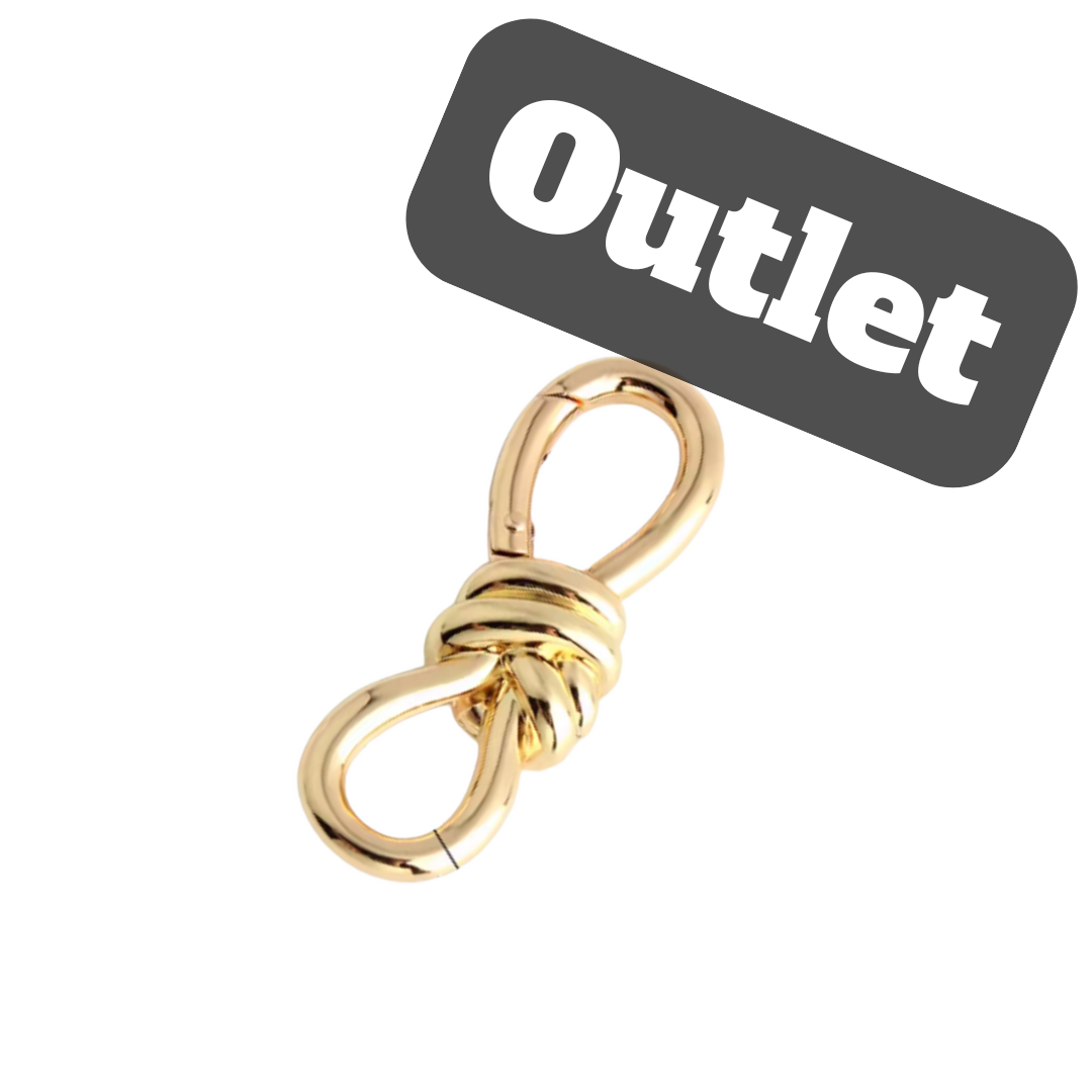 Elegancki metalowy karabińczyk w kształcie kokardy, wyróżni się na torebkach, miejskich plecakach, ale także jako elegancki brelok do kluczy. Element otwierający znajduje na większej pętelce kokardy, mniejsza pozostaje bez otwierania.
