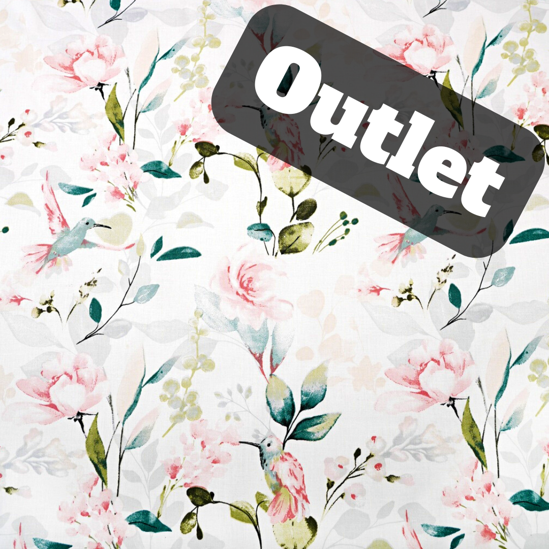 OUTLET – TKANINA NA PODSZEWKĘ – 50X80 CM – PIWONIE Z KOLIBRAMI
