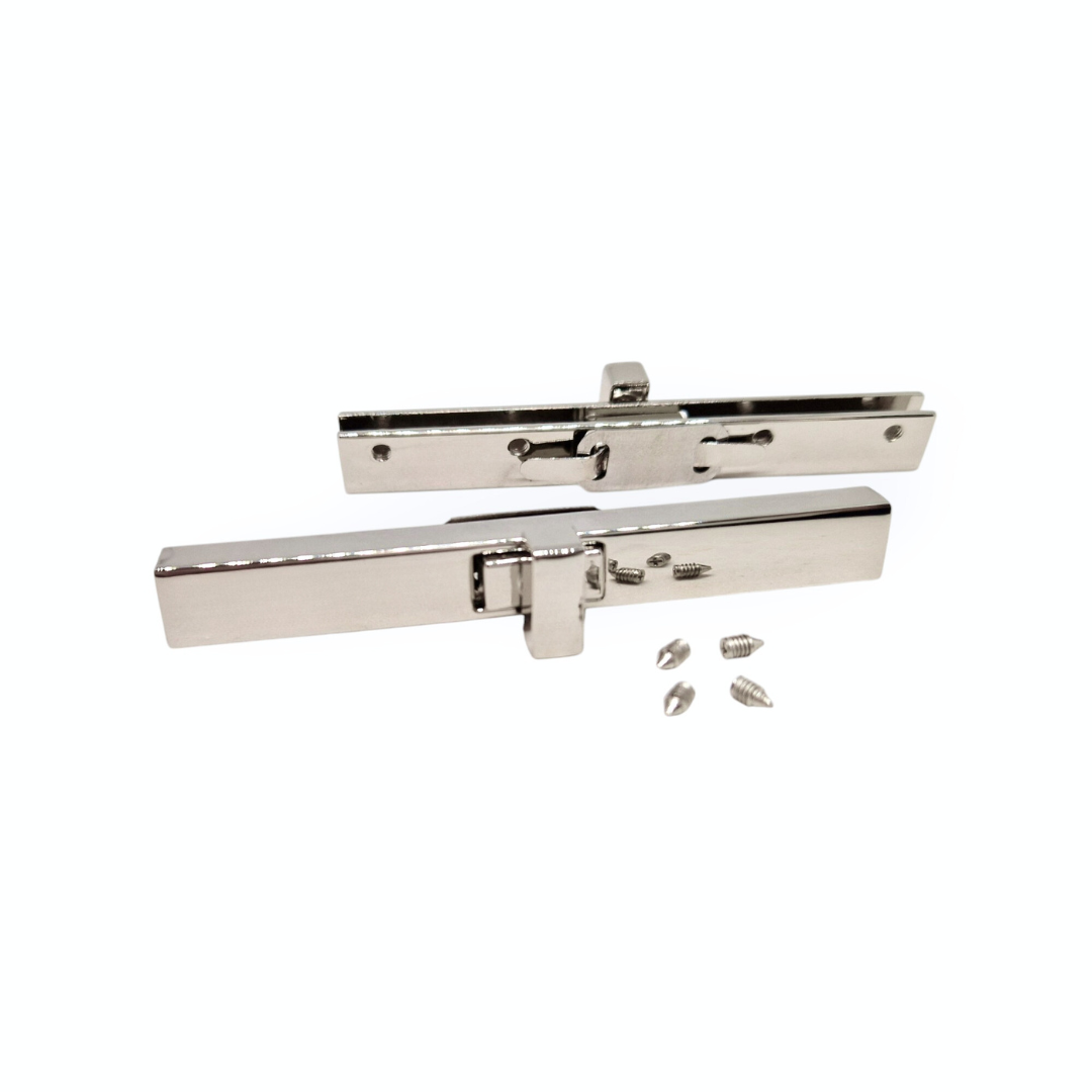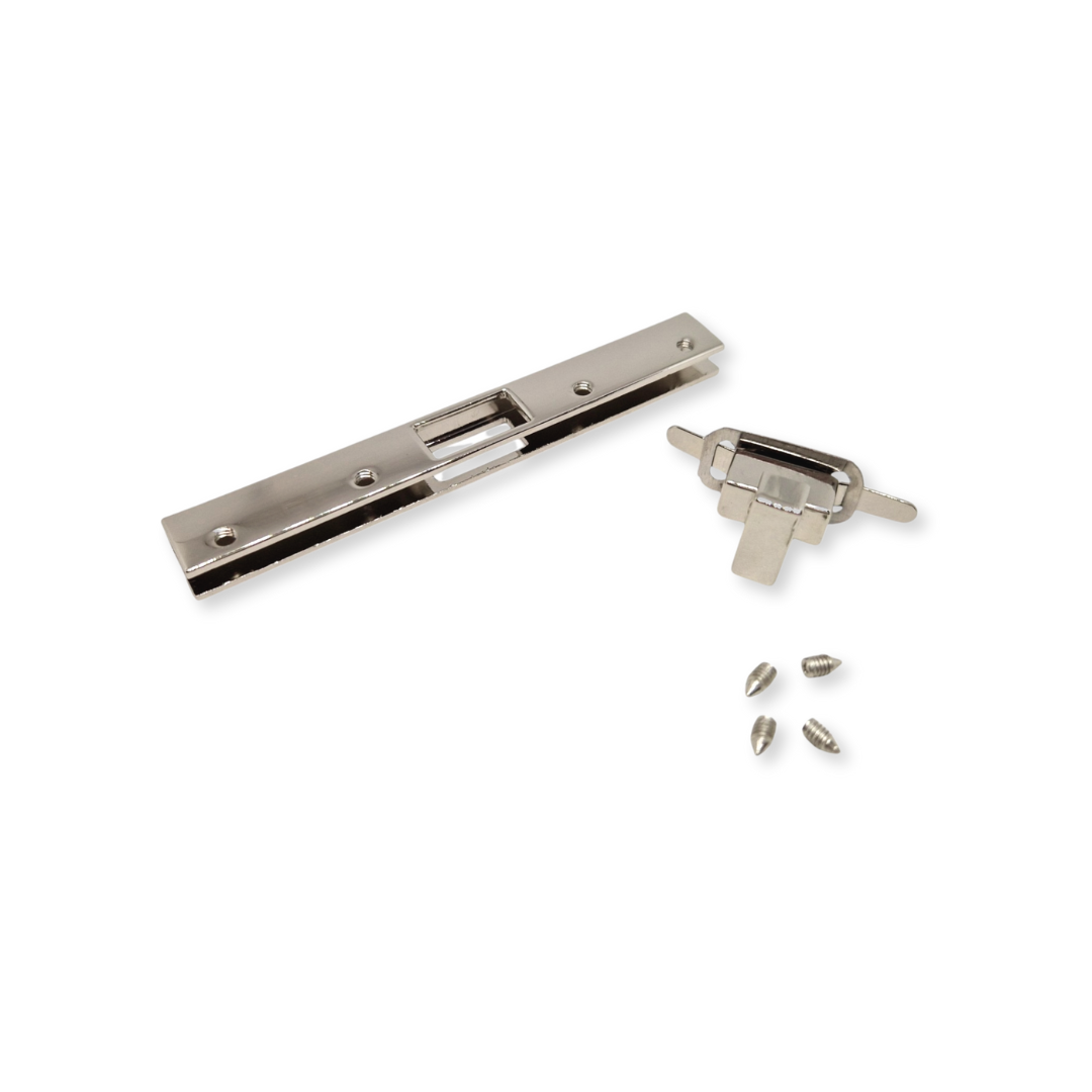 Ozdobne zapięcie do torebek w kształcie długiej listwy z przekrętką.