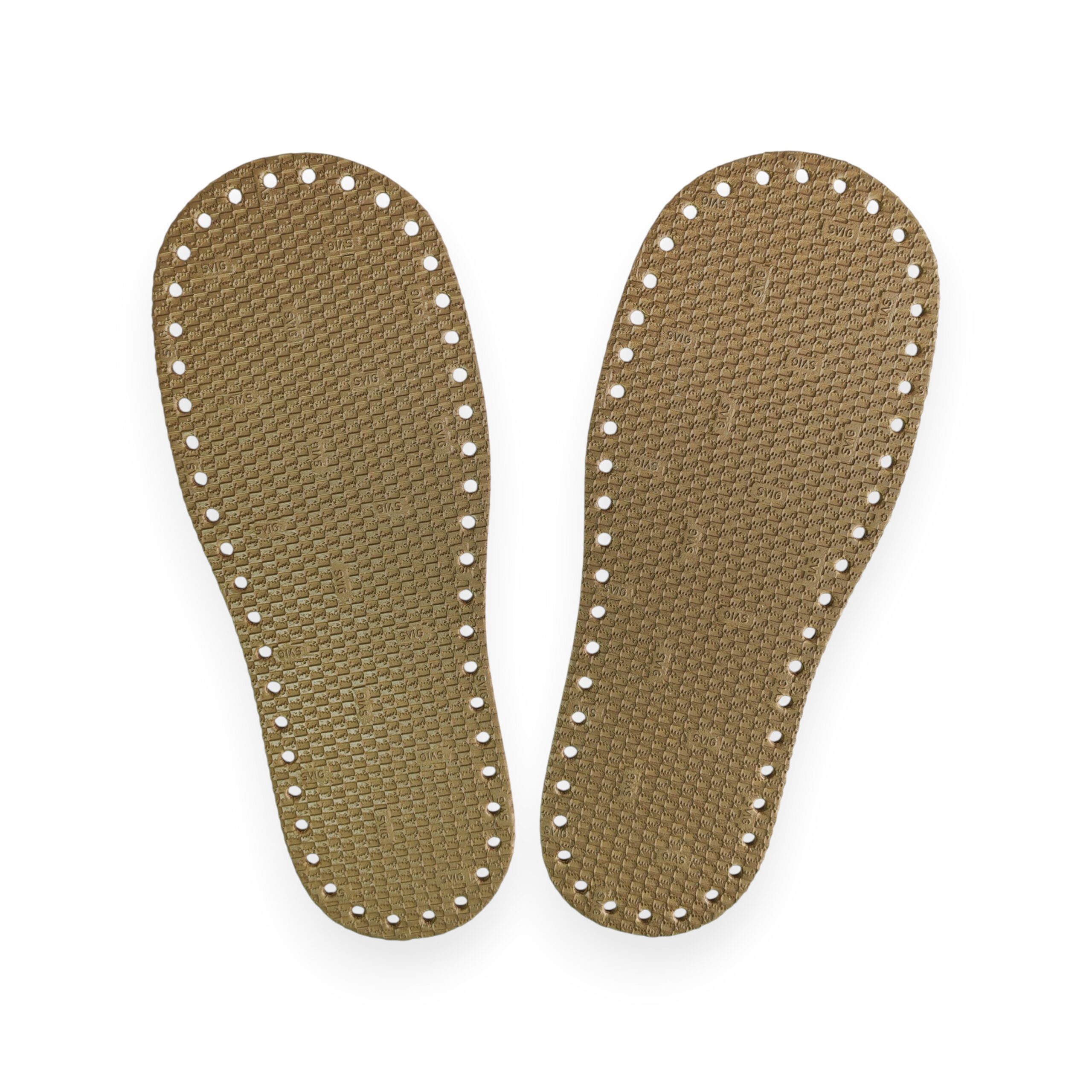 Spody do kapci/klapek wykonywanych na szydełku. Wykonane są z lekkiej i wygodnej mieszanki styrogumowej o grubości: 4 mm. Materiał ten jest bardzo odporny na ścieranie, a jednocześnie jest bardzo lekki i elastyczny. Spody posiadają gotowe otwory, przez które przewleka się igłę bądź szydełko. Dostępne są w 9 kolorach oraz  w 3 rozmiarach: 36-37, 38-39, 40-41. Podeszwy można przyszyć lub przyszyć i przykleić do kapci/klapek. Tego rodzaju spody są popularne wśród osób, które szydełkują. Dzięki nim stworzysz unikalne obuwie podkreślające indywidualny styl.