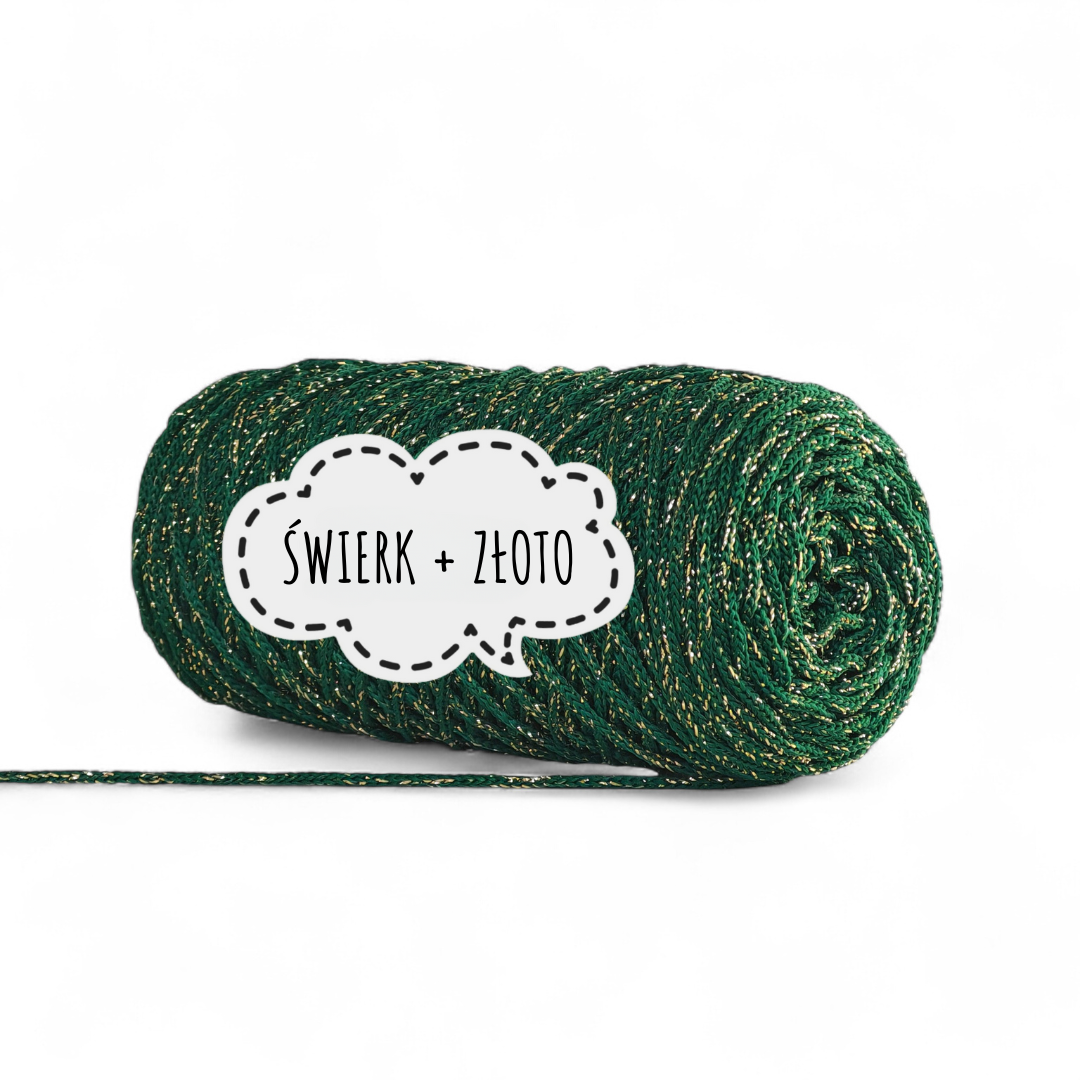 Najlepszy Sznurek poliestrowy 1 mm PIMOtki – Świerk ze złotą nitką Polskiej produkcji, który często zastępuje popularny sznurek bawełniany. Dzięki swoim właściwościom sprawdza się idealnie w tworzeniu podkładek, bieżników, biżuterii oraz torebek typu “siatka”. Jest leciutki, miękki a szydełkowanie jest przyjemne. Wodoodporność i niezniszczalność to jego największe zalety.