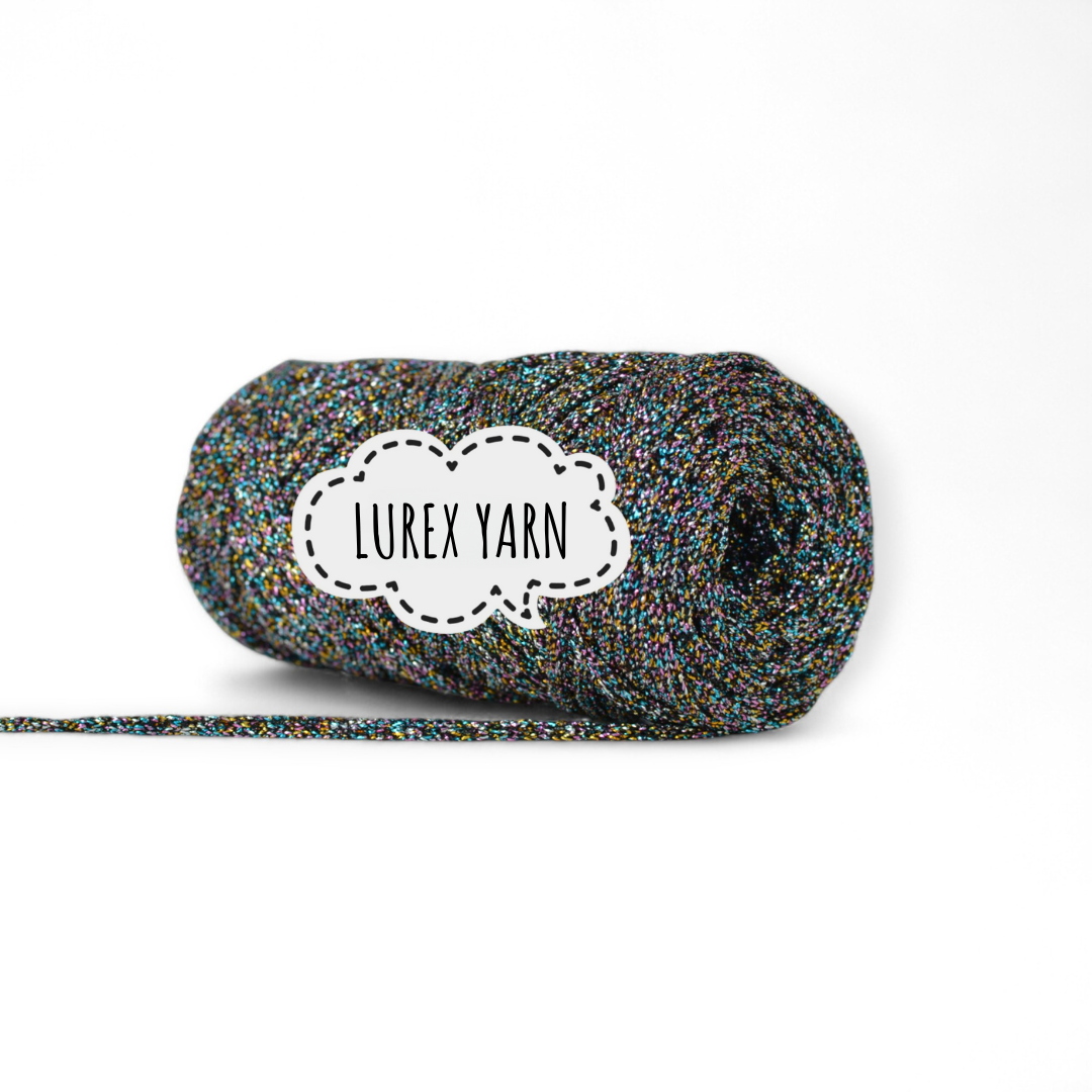 W ofercie jest także w innych kolorach: Sznurek Lurex Yarn Srebrny a także występuje w sznurkach 5mm jednokolorowych z dodatkiem metalicznej nici: Sznurek Lurex