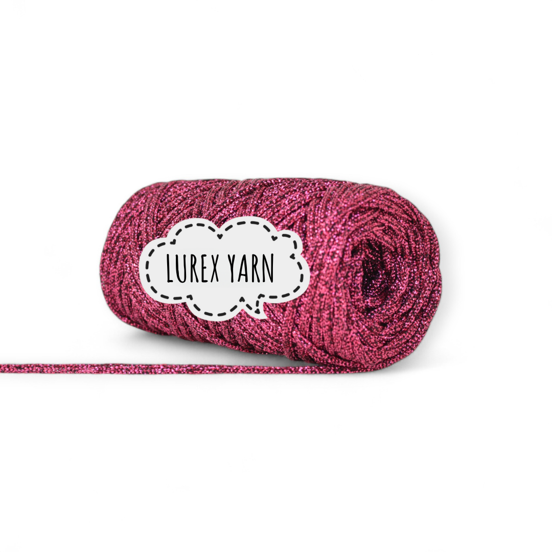 W ofercie jest także w innych kolorach: Sznurek Lurex Yarn Srebrny a także występuje w sznurkach 5mm jednokolorowych z dodatkiem metalicznej nici: Sznurek Lurex