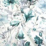 Bawełniana tkanina z motywem miętowo szarych kwiatów – do podszewek bawełnianych do torebek handmade.