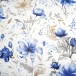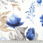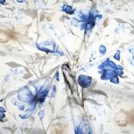 Bawełniana tkanina z motywem niebiesko beżowych kwiatów – do podszewek bawełnianych do torebek handmade.