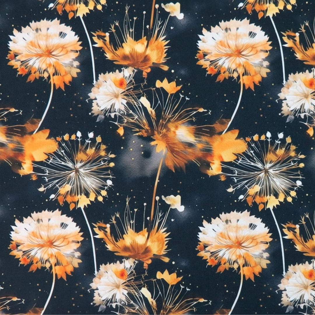 TKANINA NA PODSZEWKĘ – WODOODPORNA – 50X80 CM – DMUCHAWCE NA CZARNYM TLE