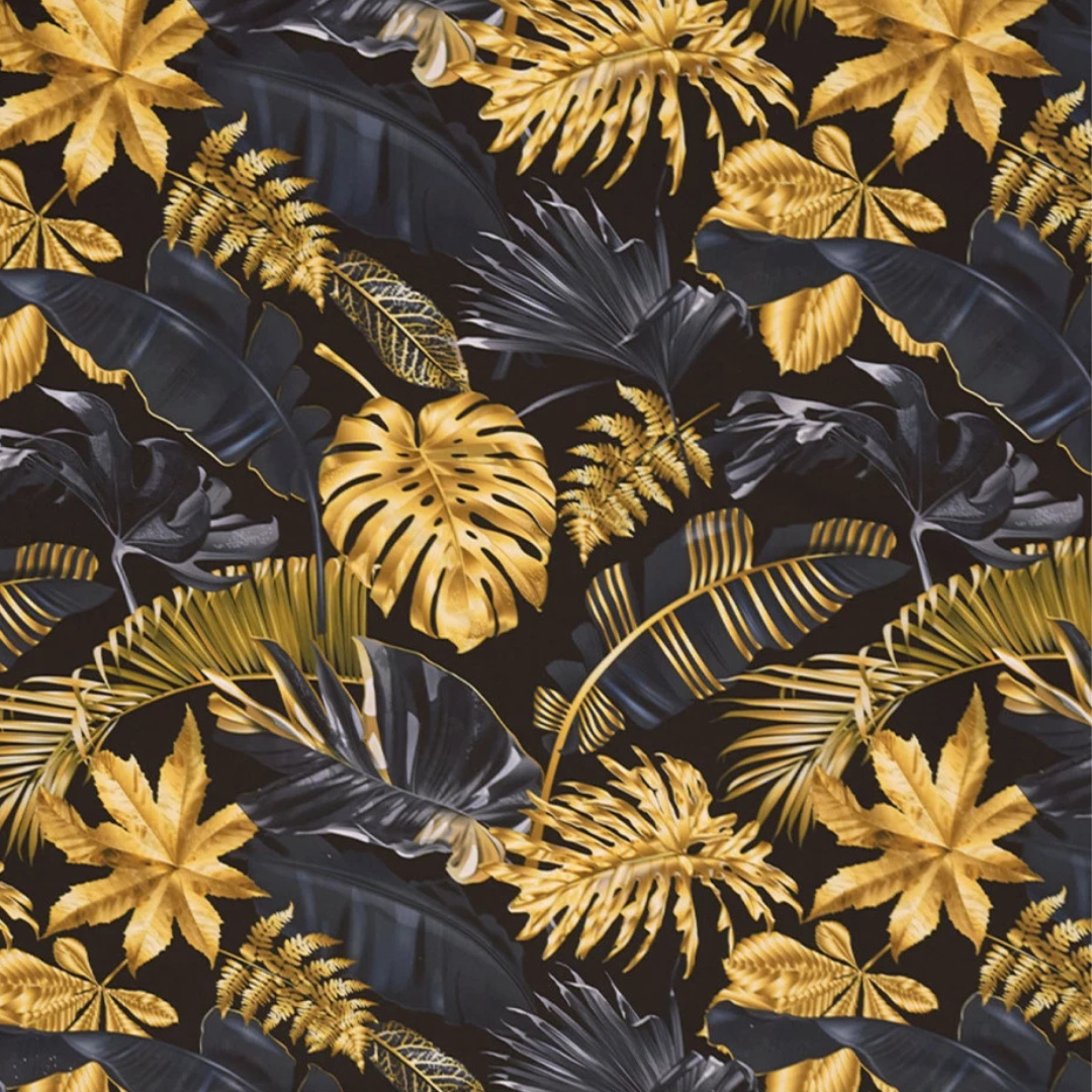 TKANINA NA PODSZEWKĘ – WODOODPORNA – 50X80 CM – ZŁOTE LIŚCIE TROPIKALNE