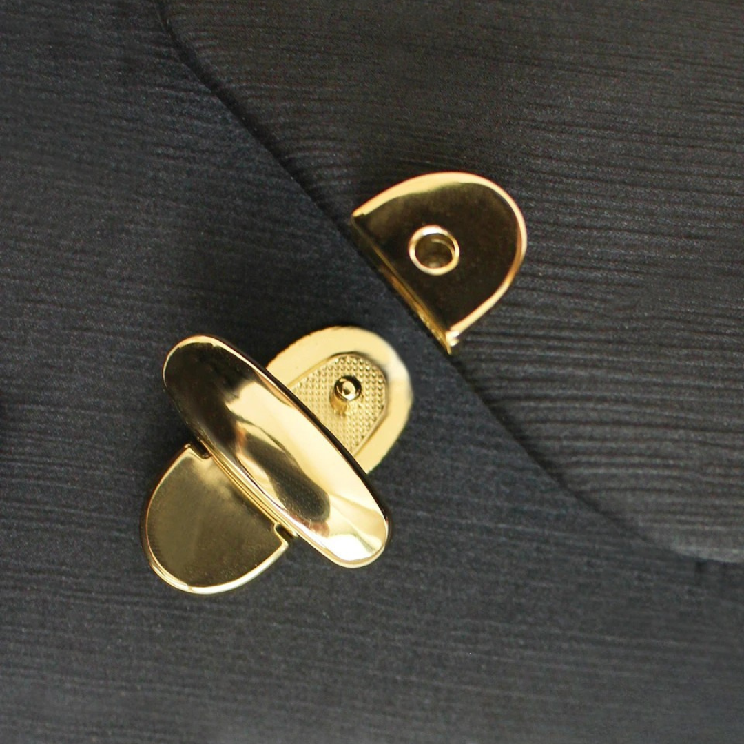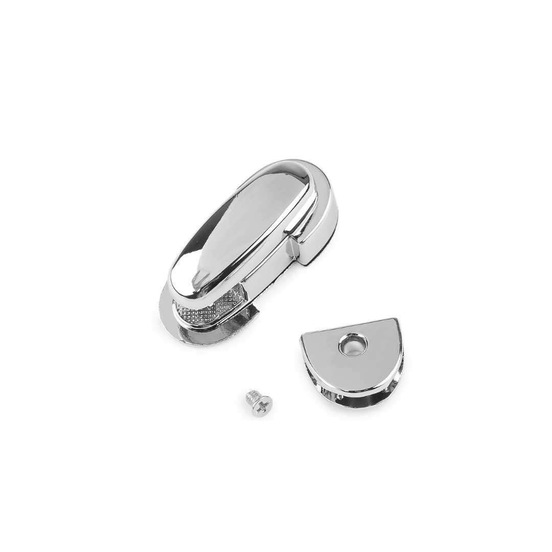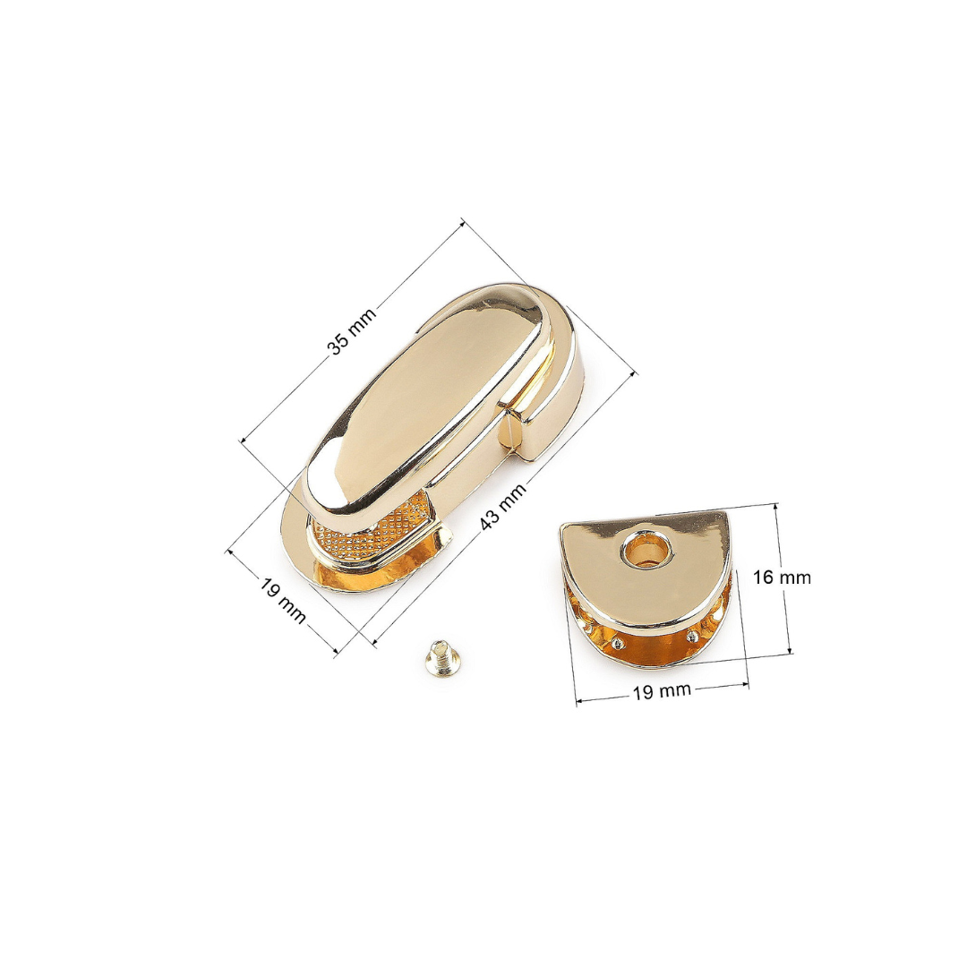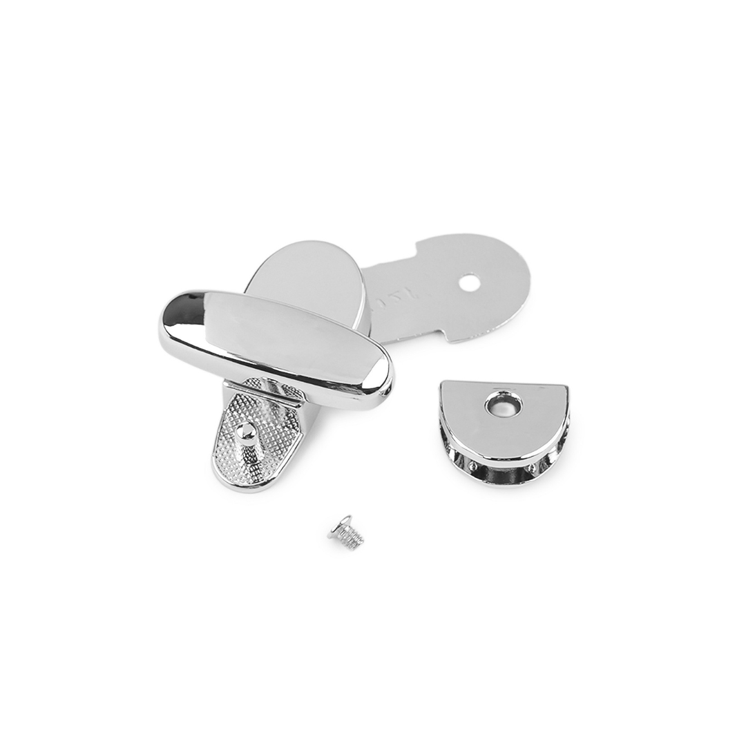 Eleganckie, obrotowe zapięcie idealne do torebek, toreb i innych projektów kaletniczych. Wyróżnia się nowoczesnym wyglądem oraz solidnym wykonaniem. Montaż jest szybki i prosty – w zestawie znajdują się dopasowane śrubki. Zapięcie składa się z dwóch części. Mniejszy element posiada delikatne ząbki, które zapewniają lepszą przyczepność do materiału i stabilność montażu.