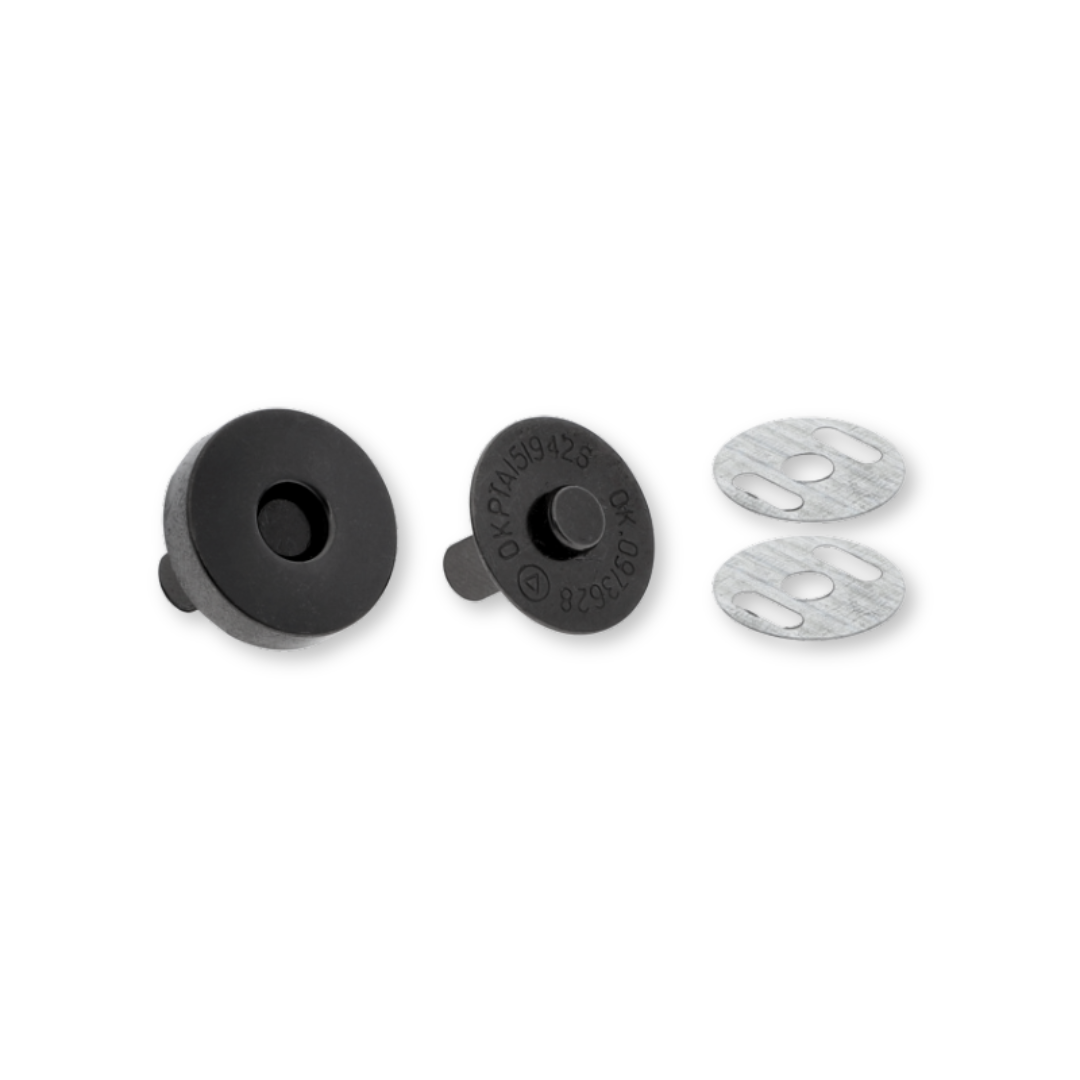 Popularne zapięcie magnetyczne z szerokim spektrum zastosowań. Często ten typ zapięcia montowany jest w damskich torebkach, które posiadają ozdobną klapę. Można również wykorzystać je jako zapięcie do futer, do portfeli, plecaków, itp. Łarrwo się je mocuje. Jeden zestaw składa się z 4 części – 2 zapięć i 2 podkładek.